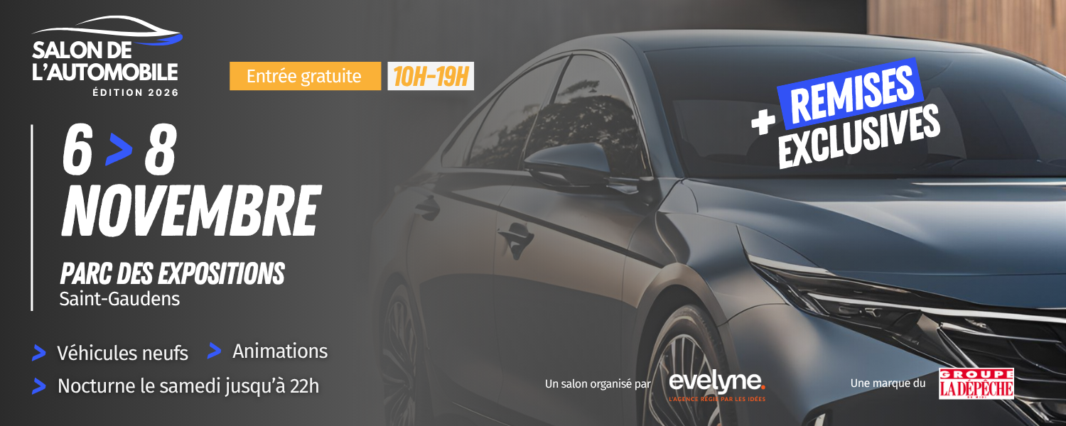 Le Salon de l’Auto Neuf du Comminges revient avec une sélection exceptionnelle de dizaines de marques et de modèles derniers cri : citadines, SUV, électriques, hybrides… tout est réuni pour trouver votre prochain véhicule.